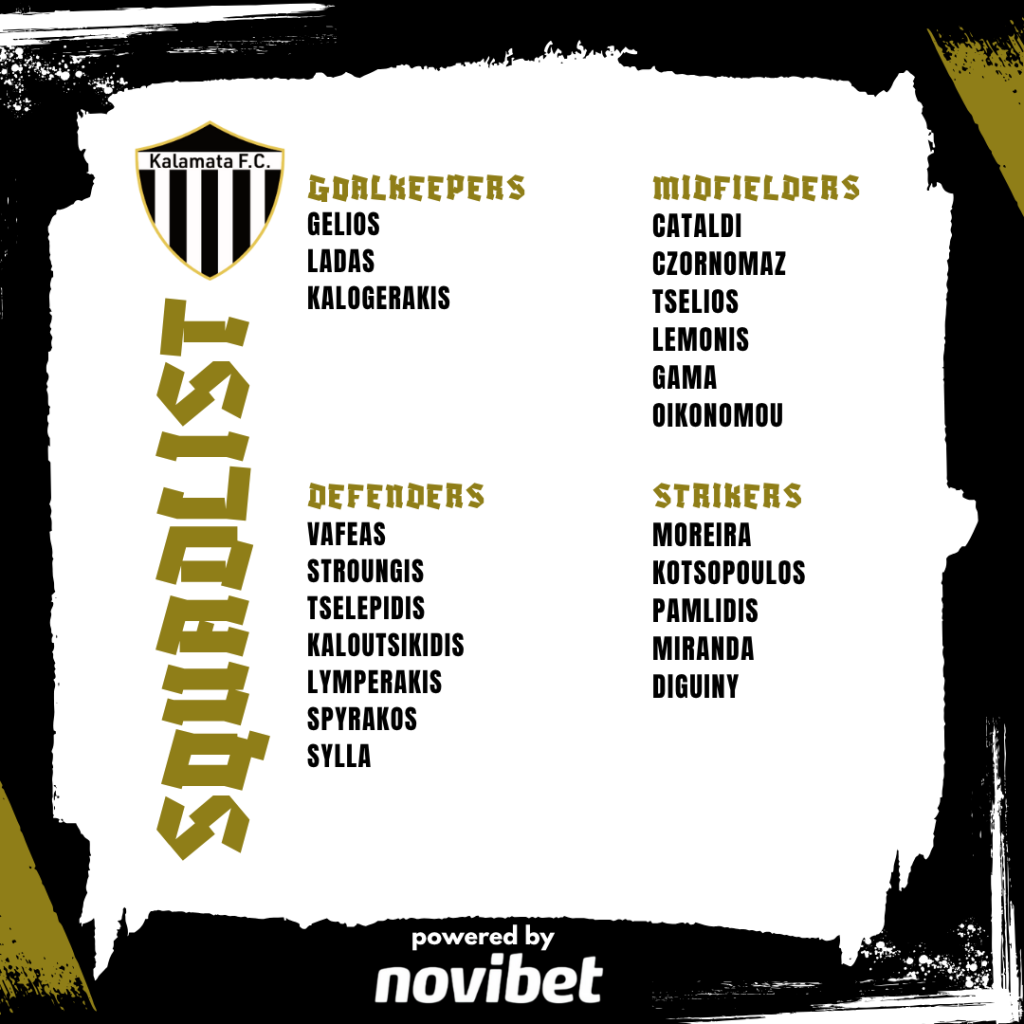 Super League 2: Η αποστολή της Καλαμάτας για τον αγώνα με την Ελλάς Σύρου